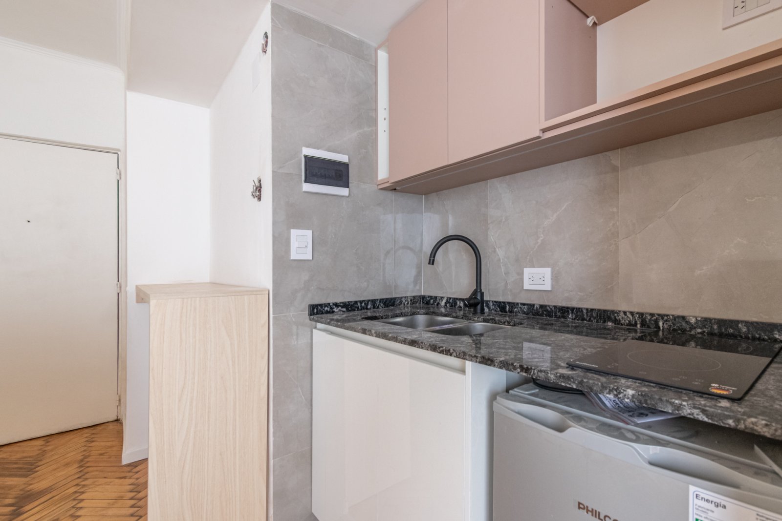 Monoambiente reciclado a nuevo con patio – Centro porteño Monoambiente reciclado a nuevo, con baño completo y cocina eléctrica con isla de madera. Cuenta con mueble tipo placard de amplios interiores y base de cama de dos plazas con cajoneras, optimizando el espacio. Dispone de patio amplio con lavadero completo y espacio para lavarropas, ideal para armar un cómodo sector exterior. Ubicado en zona neurálgica del centro, con subtes y múltiples líneas de colectivos en la puerta. Excelente opción para vivienda o inversión. Toda la información del aviso, incluyendo medidas, precio, impuestos, servicios, etc. son estimativos, sujetos a modificación y no vinculantes, según lo dispuesto en el art. 973, Cód. Civ. y Com.