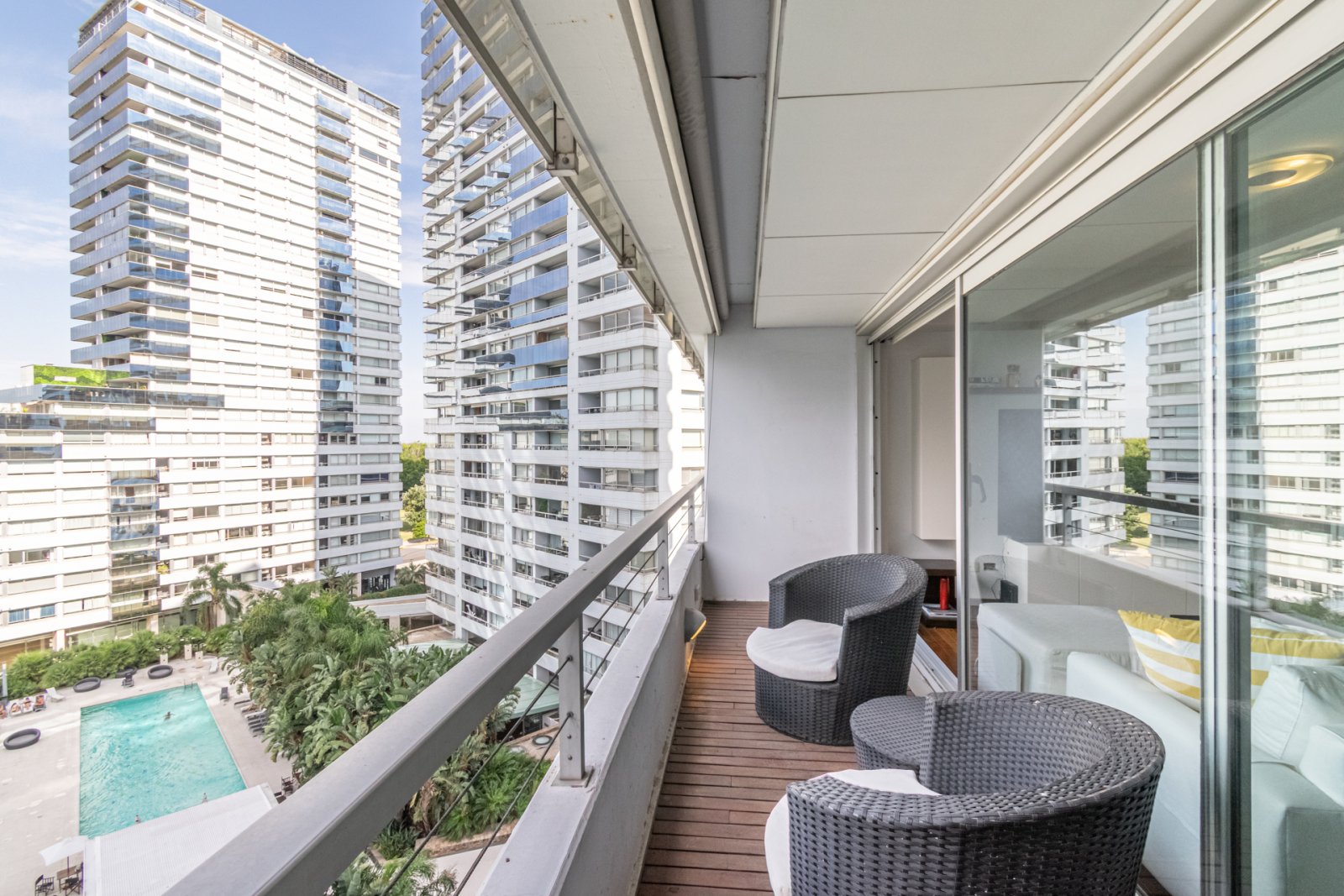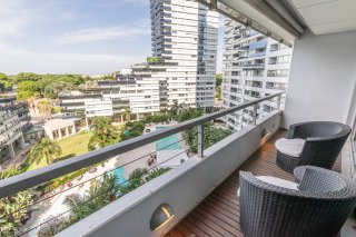 Departamento en venta dentro del reconocido complejo Zencity, específicamente en el Edificio Rubí, ubicado en el piso 8, con una privilegiada localización sobre el Dique 1 de Puerto Madero, una de las zonas más cotizadas y sofisticadas de la ciudad. Zencity se caracteriza por ofrecer un concepto residencial de primer nivel, combinando diseño, confort y naturaleza. Entre sus full amenities, se destaca su imponente parque central cuidadosamente diseñado por prestigioso paisajista, que funciona como un verdadero pulmón verde dentro del complejo. El conjunto cuenta además con piscinas exteriores, solárium, gimnasio profesional completamente equipado, salón de usos múltiples, áreas de relax y espacios comunes pensados para disfrutar durante todo el año, con seguridad y privacidad las 24 horas. El departamento ofrece una vista abierta y sumamente atractiva en todas las estaciones. Durante el invierno se aprecia el río , mientras que el resto del año se disfruta plenamente del parque interno del edificio y la Reserva Ecológica generando una sensación de amplitud y contacto permanente con la naturaleza. Esta característica lo convierte en una propiedad luminosa, serena y visualmente imponente. La unidad se encuentra totalmente equipada, incluyendo cortinas y toldos, lista para habitar. El balcón es uno de los grandes protagonistas, con dimensiones generosas que permiten crear un área de descanso ideal para disfrutar del aire libre, reuniones sociales o momentos de relax. En su interior, el departamento cuenta con un living amplio con comedor diario, cocina integrada de diseño moderno, lavadero independiente, toilette de servicio, y un dormitorio en suite con vestidor, ofreciendo comodidad, funcionalidad y excelente distribución de los espacios. La unidad tiene cochera y baulera EXPENSAS $470.000.- Toda la información del aviso, incluyendo medidas, precio, impuestos, servicios, etc. son estimativos, sujetos a modificación y no vinculantes, según lo dispuesto en el art. 973, Cód. Civ. y Com.