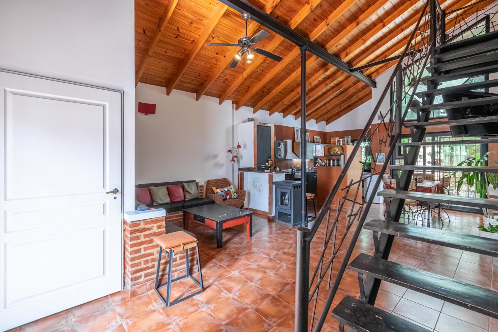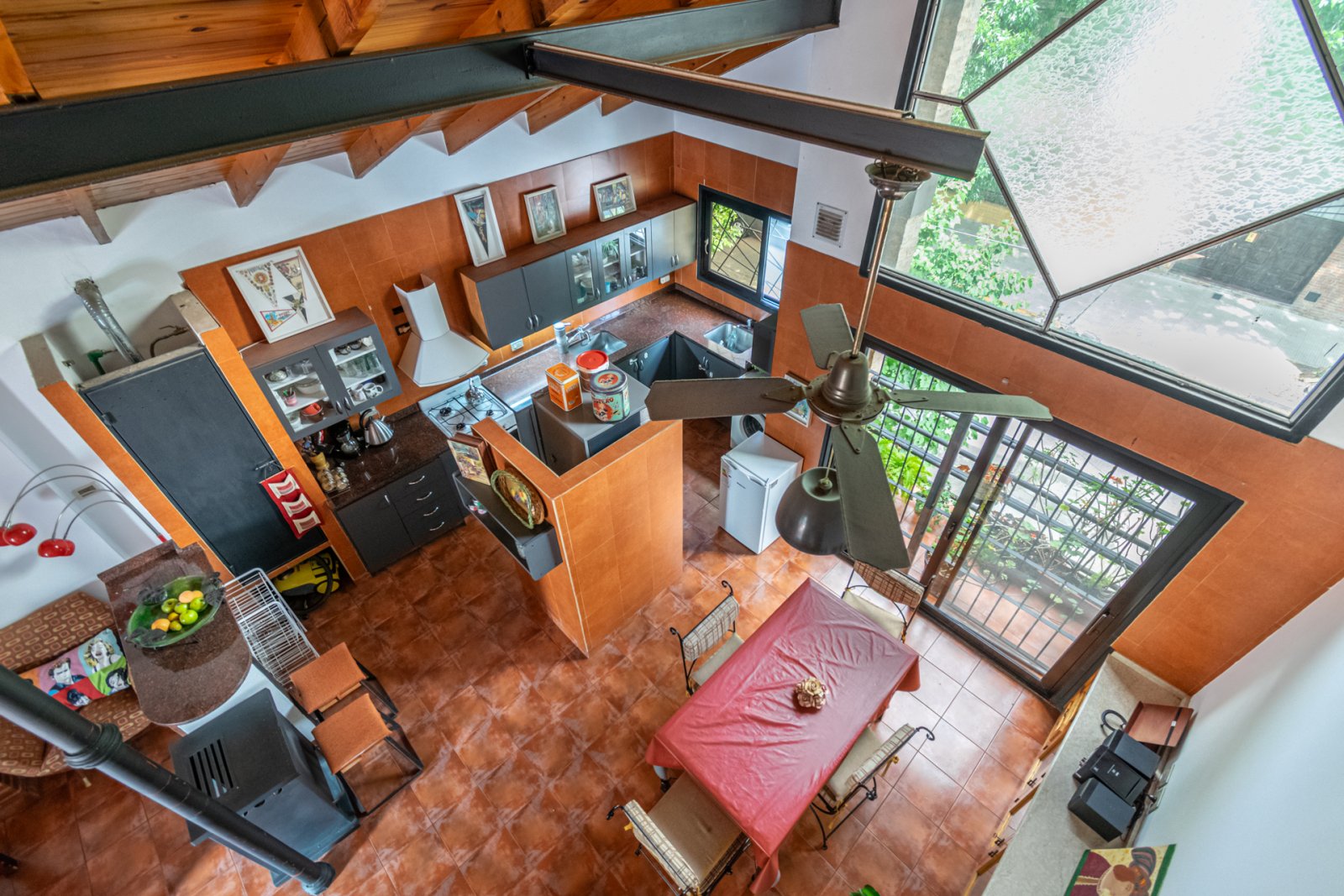 Impecable PH de 5 ambientes, con balcón y terraza, que combina amplitud, funcionalidad y una excelente luminosidad natural, en Villa Urquiza. **D E S C R I P C I O N** Por un largo pasillo independiente, subiendo las escaleras al primer piso, nos encontramos un lindo hall de entrada como antesala a la puerta del inmueble. Al entrar, tenemos un muy espacioso living comedor, con hermoso techo alto de machimbre, al estilo chalet, con excelente iluminación, pues de un lado tenemos un balcón con vista al frente, combinado un gran ventanal superior, y en el contrafrente la salida a la terraza, lo que además le suma una muy buena circulación de aire. Cuenta con conexión a aire acondicionado y calefacción con salamandra. La terraza suma un importante espacio con un área semicubierta, que puede terminar de acondicionarse para crear un lindio sitio para reuniones y asados familiares. La cocina integrada al living comedor, cuenta con conexion a gas y campana, muy buenos espacios de guardado en excelentes condiciones, mesada de granito y un importante espacio para heladera, además, cuenta con espacio bajo mesada con conexión hecha para lavaropas. En este piso encontramos dos amplios dormitorios con placard empotrado, amplias ventanas en frente y la otra a la terraza, para una buena iluminación. Pisos de vinílicos click alto tránsito, y calefacción con estufa de tiro balanceado y ventilador de techo. Desde el living una escalera de hierro, nos da acceso a la segunda planta, originalmente con dos amplios dormitorios, con ventanas al frente y contrafrente, con conexión a aire acondicionado, muy luminosos y ventilados, estos espacios hoy cuentan con equipos industriales de panadería, por el oficio del propietario. Ambos pisos cuentan con baños completos con ducha, bastante espaciosos y modernos. Toda la información del aviso, incluyendo medidas, precio, impuestos, servicios, etc. son estimativos, sujetos a modificación y no vinculantes, según lo dispuesto en el art. 973, Cód. Civ. y Com.