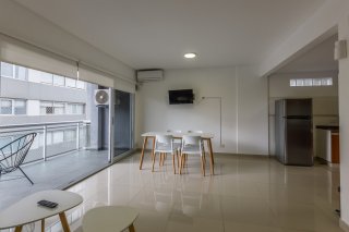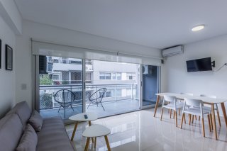 Semipiso de dos ambientes, al contrafrente, ubicado en el tercer piso, totalmente equipado y preparado para alquiler temporario o tradicional, en Palermo Hollywood. Dispone de living comedor luminoso con cocina integrada y salida a gran balcón. Cuenta con un dormitorio con placard incorporado, hall con placard de recepción, y un baño completo. Ventanas de piso a techo que brindan excelente luz natural. Edificio moderno en muy buen estado. A una cuadra de Av. Juan B. Justo (Metrobus), a cinco cuadras de Av. Santa Fe y a seis cuadras de la estación Palermo (Subte línea D). Próximo al Shopping Distrito Arcos, al Polo Tecnológico de calle Godoy Cruz, y a Clínica Los Arcos. Zona bien conectada mediante transporte público y con múltiples accesos a distintas zonas de la ciudad. Toda la información del aviso, incluyendo medidas, precio, impuestos, servicios, etc. son estimativos, sujetos a modificación y no vinculantes, según lo dispuesto en el art. 973, Cód. Civ. y Com.